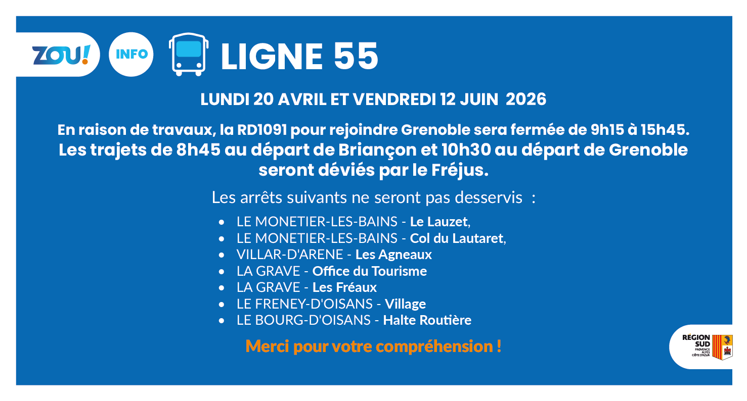 Réservez dès maintenant votre billet pour la LIGNE 55 Briançon - Grenoble, le transport le plus direct et économique pour rejoindre les stations de skis du Briançonnais depuis l’Isère.