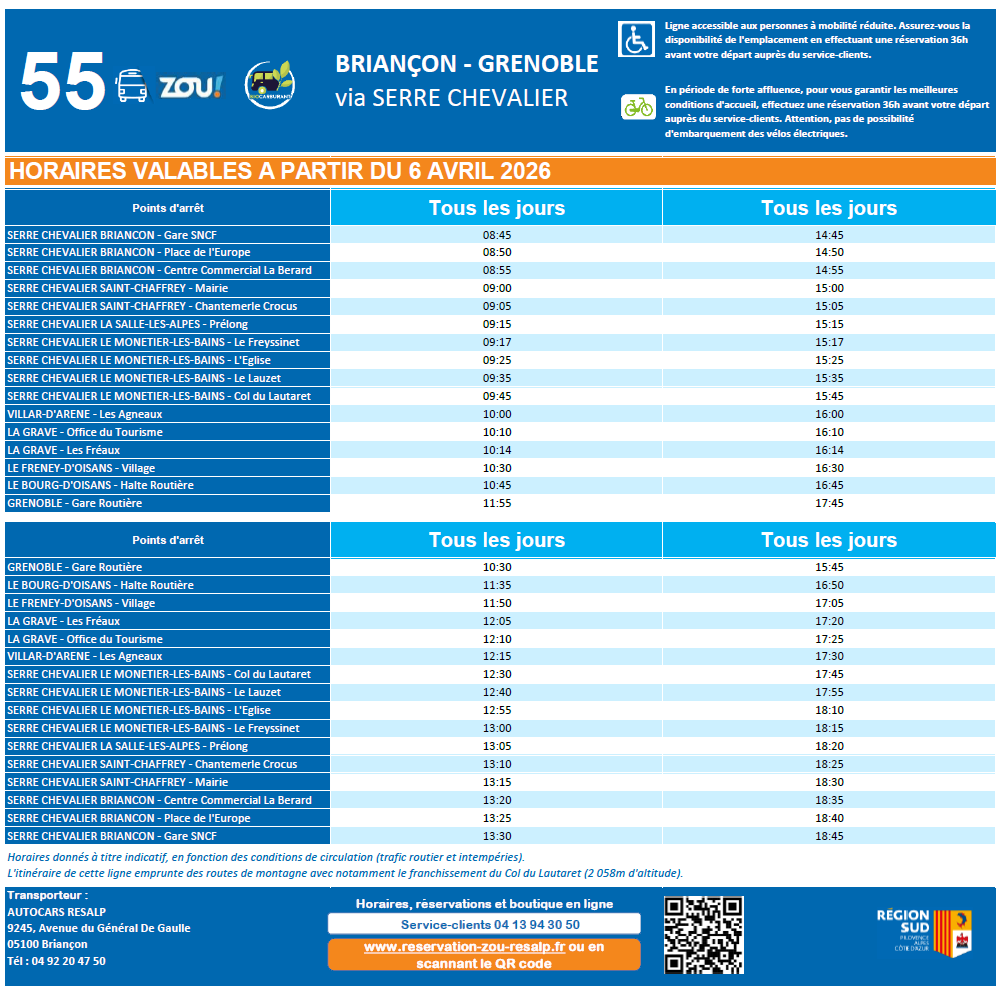 LIGNE 55 Briançon – Grenoble via Serre Chevalier